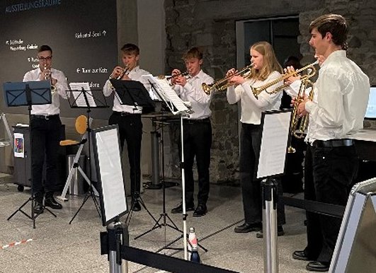 Am 17.03.2023 eröffnete das Trompetenensemble der Musikschule Konstanz die ‚Nacht der Bibliotheken‘ in der Stadtbibliothek im Kulturzentrum am Münsterplatz. Unter der Leitung von Bernhard Scheideck präsentierte das Ensemble Ausschnitte aus seinem breit gefächerten Repertoire und fand beim Publikum viel Applaus, insbesondere auch für die charmanten Ansagen.
