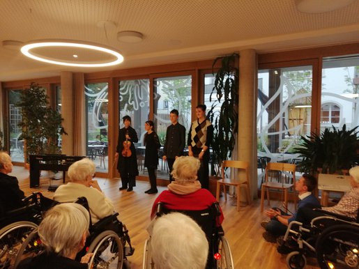 Auf Initiative von Luise Mitsch Vorsitzende des Altenhilfevereins) konzertierten am Samstag, den 26.11.2022 Schülerinnen und Schüler der Begabtenklasse der Musikschule Konstanz im Seniorenzentrum Haus Talgarten. Die jungen Musiker präsentierten solistisch und kammermusikalisch Werke für Klavier, Querflöte, Gitarre, Violine und Viola von Johann Sebastian Bach, Ludwig van Beethoven, Wilhelm Popp, Antonín Dvořák, Nikolai Rimski-Korsakow, Agustin Barrios Mangoré und Leo Brouwer. Das Publikum war sichtlich und hörbar begeistert von den hochvirtuosen Darbietungen.