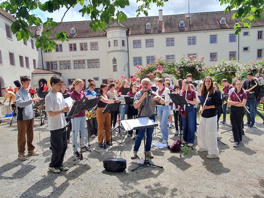 Am 25.Mai 2023 haben mehrere Schüler- und Jugendensembles das traditionelle Frühjahrskonzert in der Turnhalle der Sonnenhalde gespielt. Mit dabei waren die Roten Streichhölzer, die Bläserbande, Constantia Junior, das Jugendblockflötenensemble und das Gitarrenensemble.