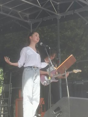 Auf dem Bild: die Musiker*innen mit Luise Mitsch