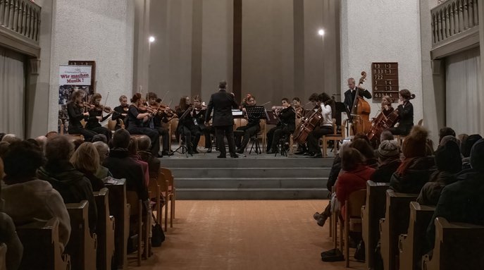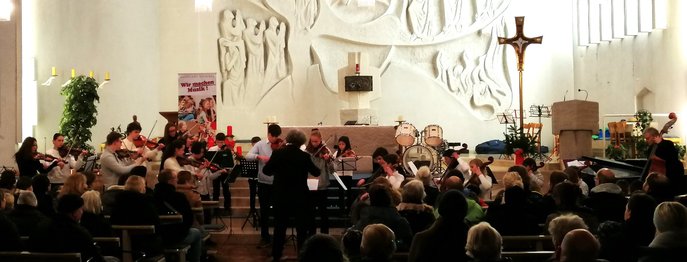 Am Donnerstag, den 08.12.2022 konzertierten um 18.00 Uhr die Junioren- und Mittelstufenorchester der Musikschule Konstanz in der Bruder Klaus Kirche. Im rund einstündigen Programm erklang adventliche Musik von Thomas Tallis bis zu Edvard Grieg. Zu hören waren die ‚Bläserbande‘ (Ltg.: Josep Mas Mestre), der Kinderchor, sowie als Gast der Kinderchor Paradies (Ltg.: Rebecca Heudorfer), das Blockflötenjuniororchester (Ltg.: Bettina Haugg-Scheu), ‚Constantia Junior‘ (Ltg.: Matthew Brooke), das Gitarren-Ensemble (Ltg.: Clemens Deissler) und ein Blechbläserensemble (Ltg.: Steffen Schwartz). Das zahlreiche Publikum war von dem Programm begeistert und spendete langanhaltenden, herzlichen Applaus.