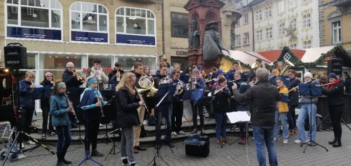 Den Konstanzer Weihnachtsmarkt eröffnete am Freitag, den 25.11.2022 um 13.30 Uhr OB Uli Burchardt. Musikalisch umrahmt wurde die Eröffnung durch das Jugendblasorchester der Musikschule Konstanz unter der Leitung von Klaus Sell. Das Orchester begeisterte mit Weihnachtsmusik aus allen Kontinenten.