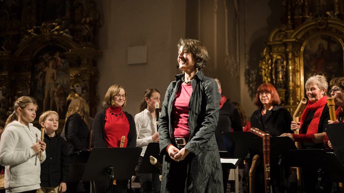 Gegründet von Ulrike Becker im Jahr 1989 wird das Orchester seit 2006 von Bettina Haugg-Scheu geleitet. Die Mitspieler und Mitspielerinnen sind engagierte Laien und semiprofessionelle Blockflötisten. Das Orchester widmet sich vor allem der Originalliteratur für Blockflöten in großer Besetzung von der Sopraninoblockflöte bis zur Subbassblockflöte und erweitert sein Repertoire ständig in allen Epochen und Stilen. Projekte mit anderen Instrumentalisten bzw. Sängern ist ein weiterer Aspekt der Orchesterarbeit. Es bestehen Freundschaften mit anderen Blockflötenorchestern („da capo“ Ostfildern e.V., Blockflötenorchester Kesswil, Hoffnungsflöten Karlsruhe). Das Orchester konzertiert ein bis zweimal im Jahr in einem eigenen Konzert, gestaltet Gottesdienste und bereichert Konzerte der Musikschule. Seit Sommer 2016 ist das Orchester ein Teil der Musikschule Konstanz.