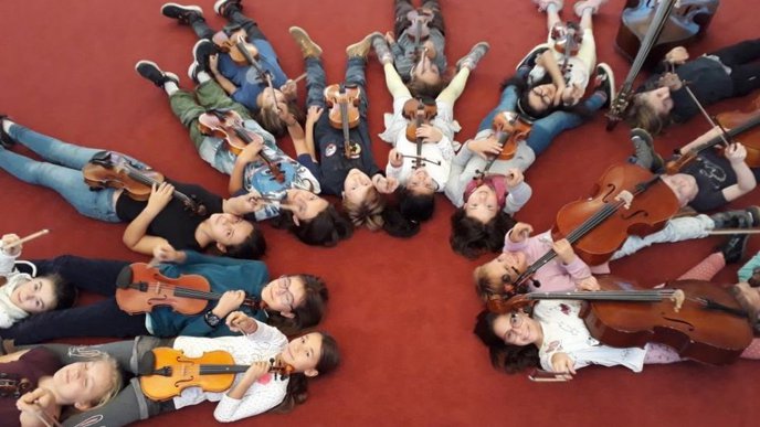 Das jüngste Streichorchester der Musikschule Konstanz steht Geigen, Bratschen, Celli und Kontrabässen offen, die etwa ein Jahr Unterrichtserfahrung mitbringen. Mit unterschiedlich schweren Stimmen werden wir verschiedenen Niveaus gerecht. So gibt es auch Stimmen mit hauptsächlich leeren Saiten, um das Orchesterspiel so früh wie möglich zu fördern.